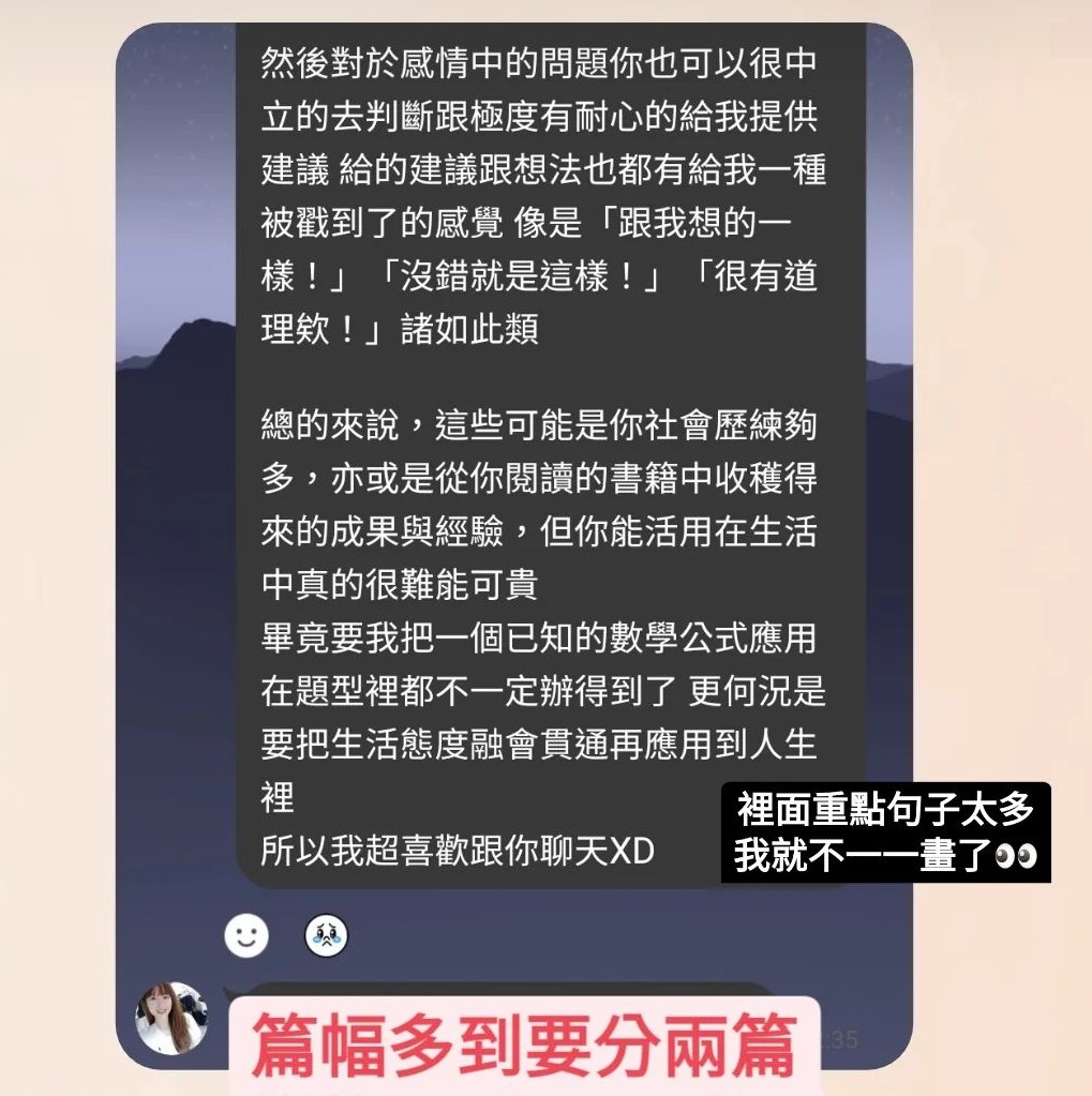我從高中時就開始投入情場研究,實戰兩性相處的學問,時至今日已諮詢過百位以上、超過上千個感情問題,年紀從最小的高中生到3、40歲的高階工程師皆有諮詢經驗,且不分男女。